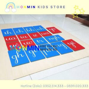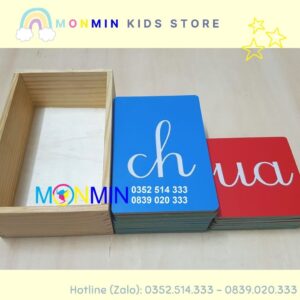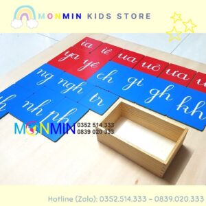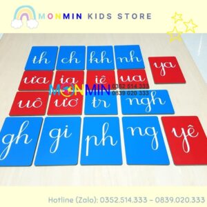 Chữ nhám Tiếng Việt – nét viết thường âm ghép – Bộ 19 chữ MONMIN (Montessori Sandpaper Letters)